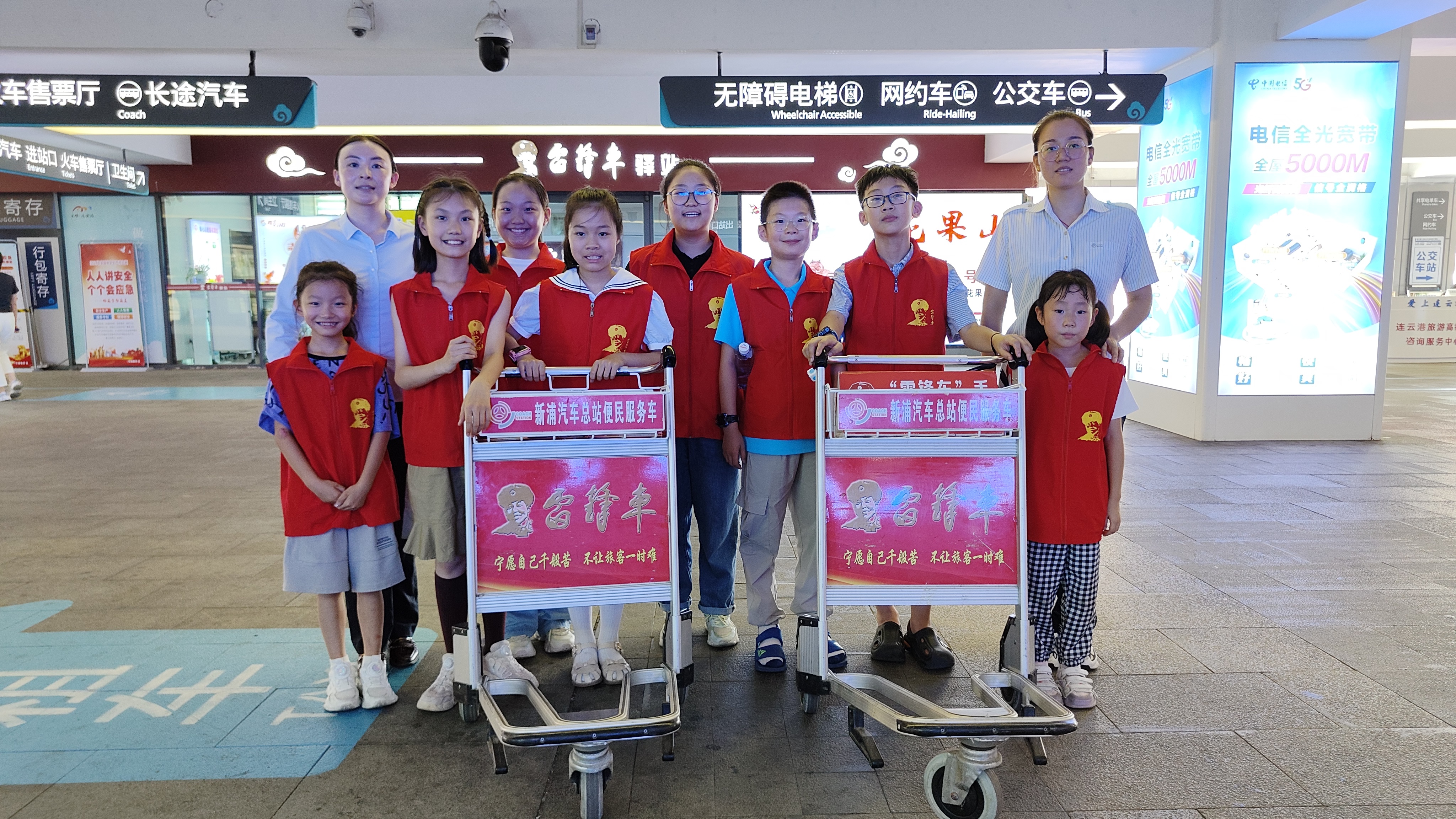 在雷锋车驿站内,“雷锋车”手们耐心细致地向孩子们详细介绍了驿站的基本概况,包括服务流程、服务标准以及涵盖“五小”爱心服务、行李转运、导乘问询等在内的多项志愿服务项目。随后,孩子们穿上鲜艳的红马甲,化身为小小志愿者,体验当一天“小雷锋车”手。她们与真正的“雷锋车”手共同为旅客搬运行李、解答疑问,用实际行动践行“宁愿自己千般苦,不让旅客一时难”的服务承诺,在感受雷锋精神的同时,也让旅客出行之路更加温馨,赢得了旅客们的好评和点赞。