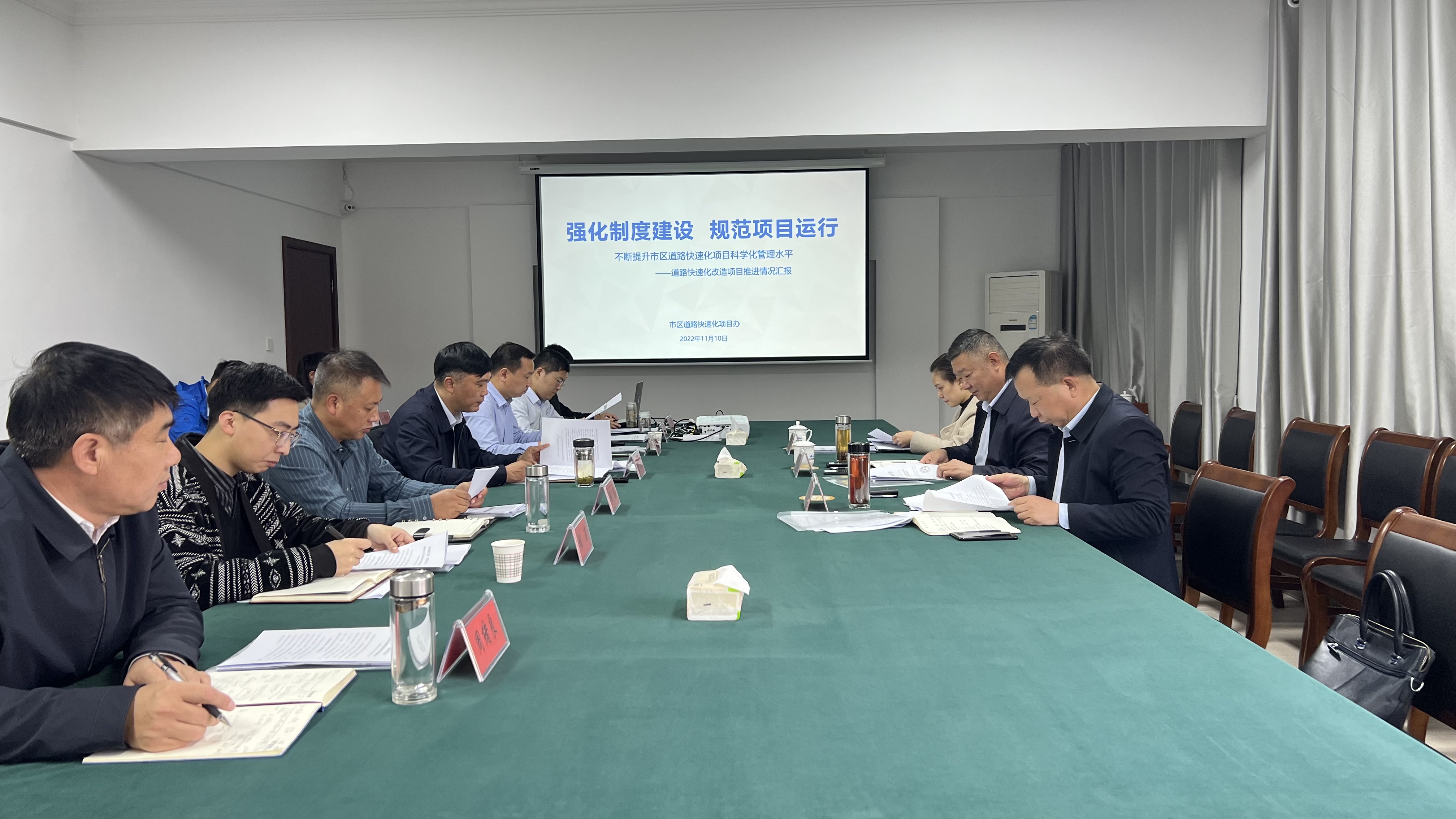 11月10日下午,市纪委监委派驻第二十一纪检监察组组长张海一行调研安博app最新版下载,安博(中国)市区道路快速化改造项目工作推进情况,项目办领导班子成员、各部门负责人参加调研会。