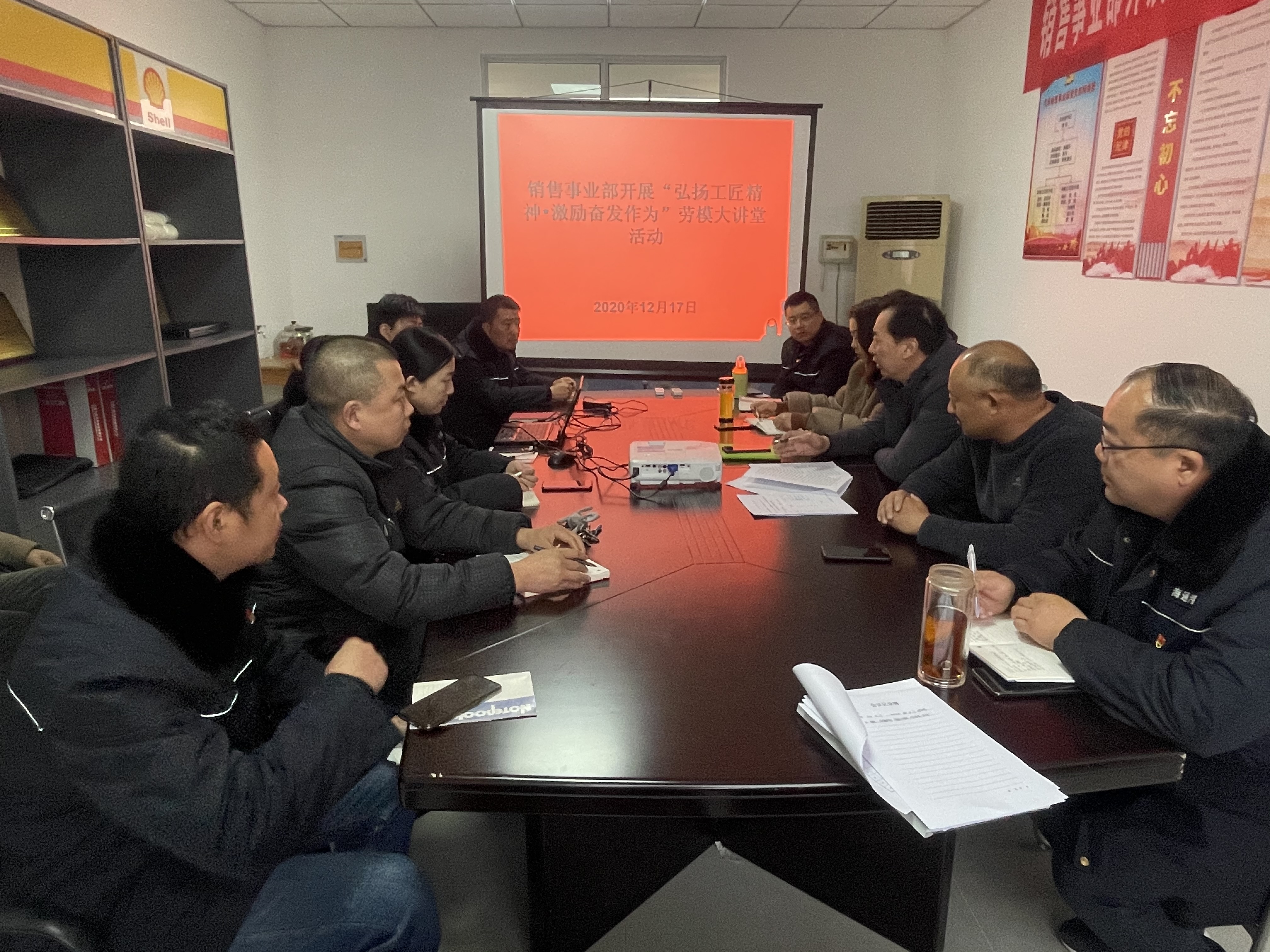 为大力弘扬工匠精神,进一步激励广大职工奋发作为,营造劳动最光荣的企业风尚和精益求精的敬业风气,12月17日下午,销售事业部积极开展“弘扬工匠精神?激励奋发作为”劳模大讲堂活动。销售事业部10余名干部职工参加活动,活动由经理栾文忠主持。