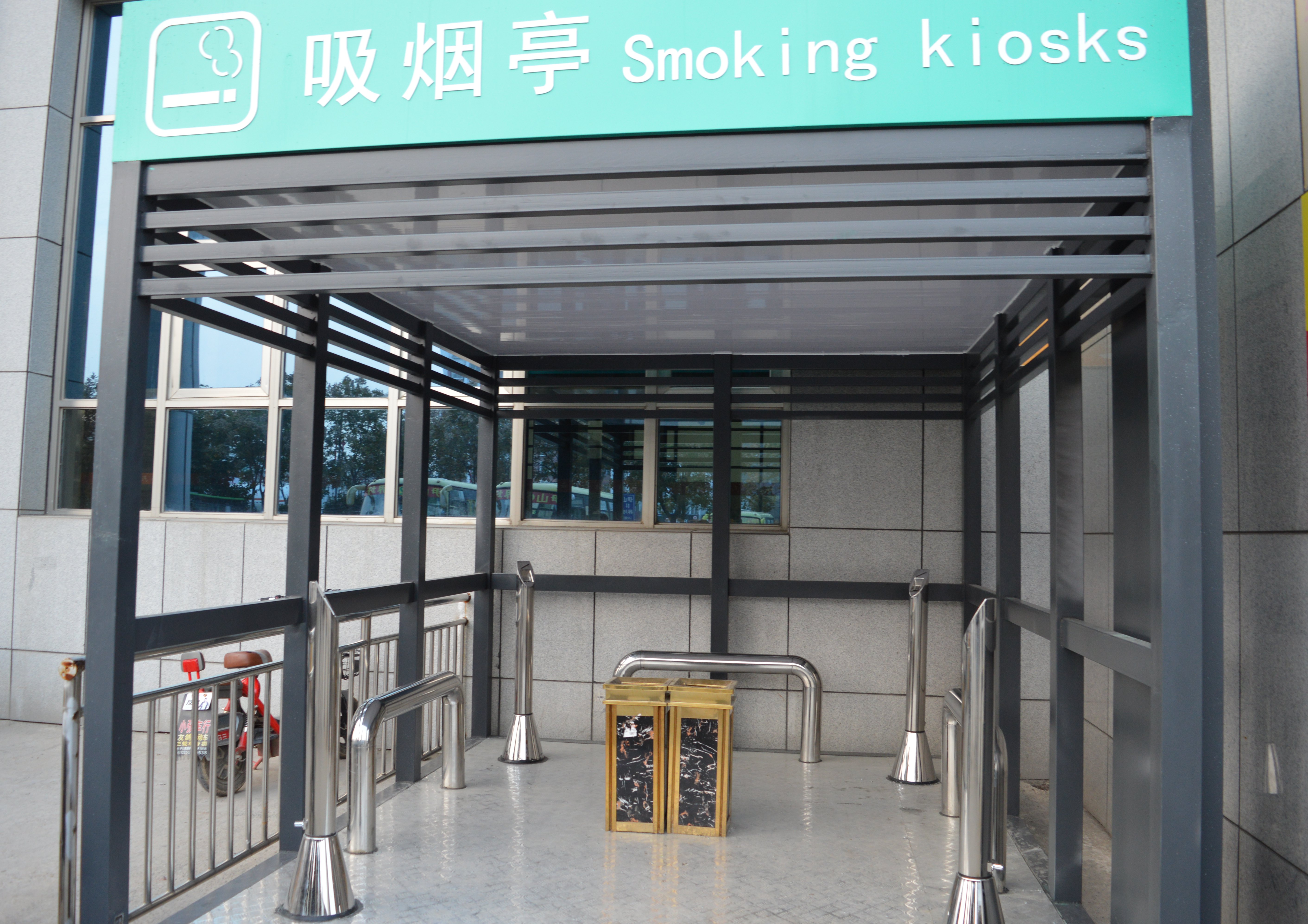 灌云客运站作为公共场所,平时人流量较多,设立吸烟亭可以给予烟民一个良好的吸烟环境,更为文明地进行吸烟,同时也预防了随处吸烟、乱扔烟蒂等不文明现象的发生。