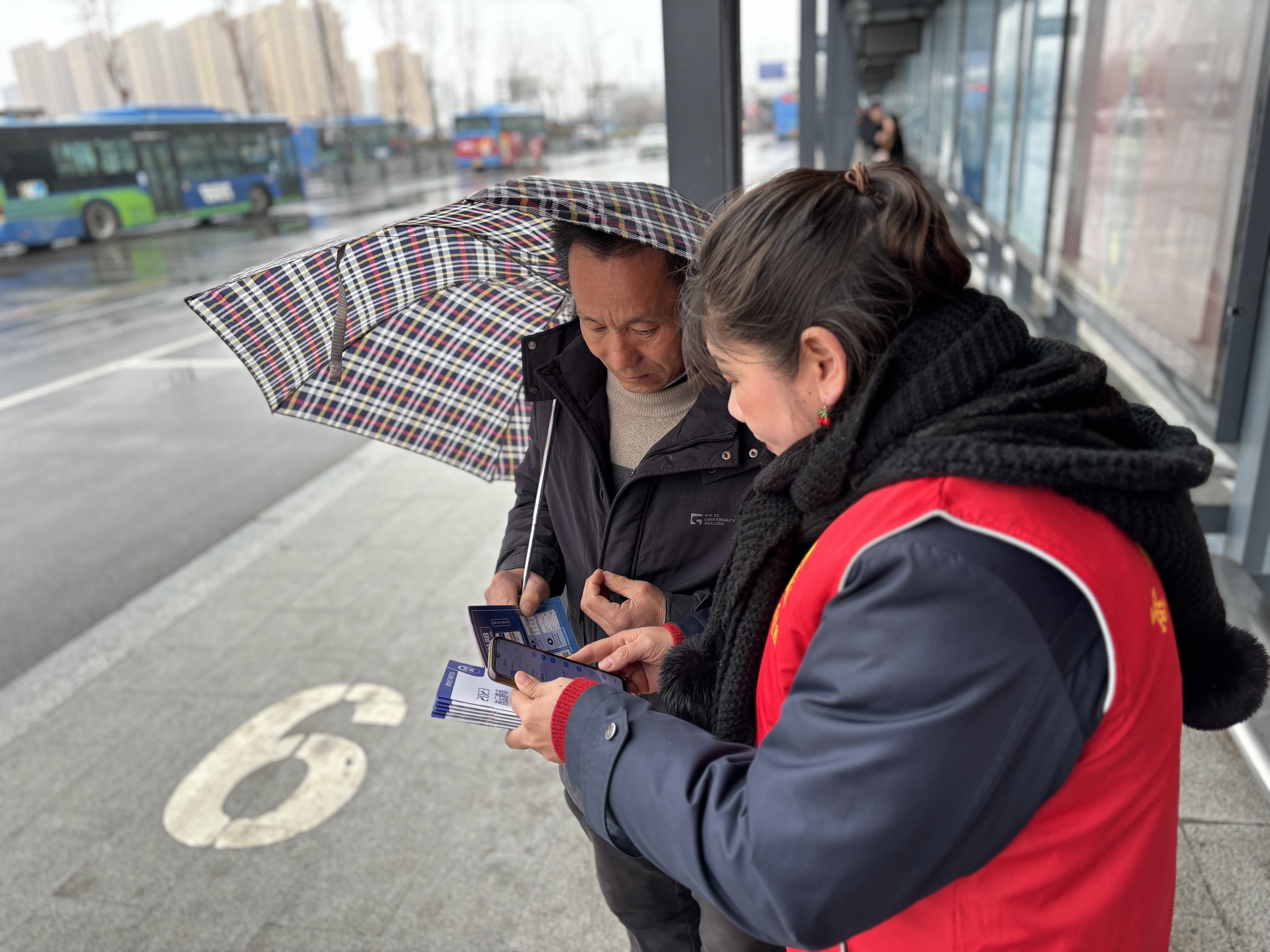 志愿服务人员在客流密集站点开展志愿服务活动,做好现场管理,引导乘客有序乘车,并帮助提拿重物,搀扶老人上车,找寻座位,确保安全落座。现场解答乘客对路程中转问题的问询,为市民规划最为方便快捷的出行路线。同时,指导乘客扫码乘车,详细讲解操作步骤,尽己所能为市民提供帮助,不断增强市民出行的便捷度和舒适度。
