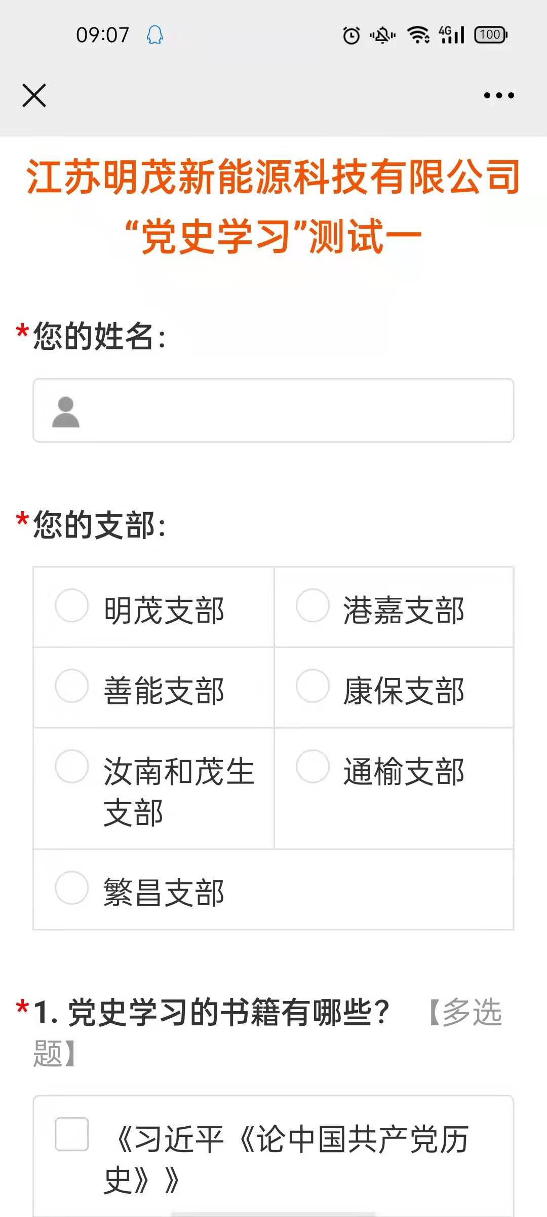 为提升广大党员的党史学习热情,营造浓厚的党史学习氛围。5月17日,明茂公司开展“学党史、忆初心、悟思想”党史学习每周一练在线测试活动。