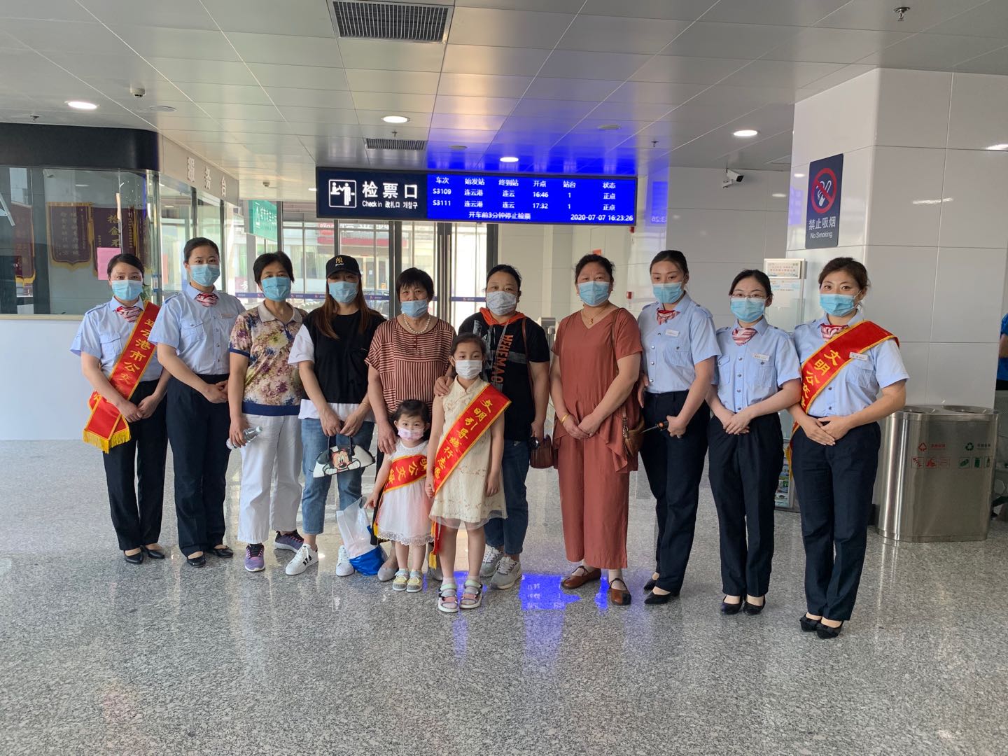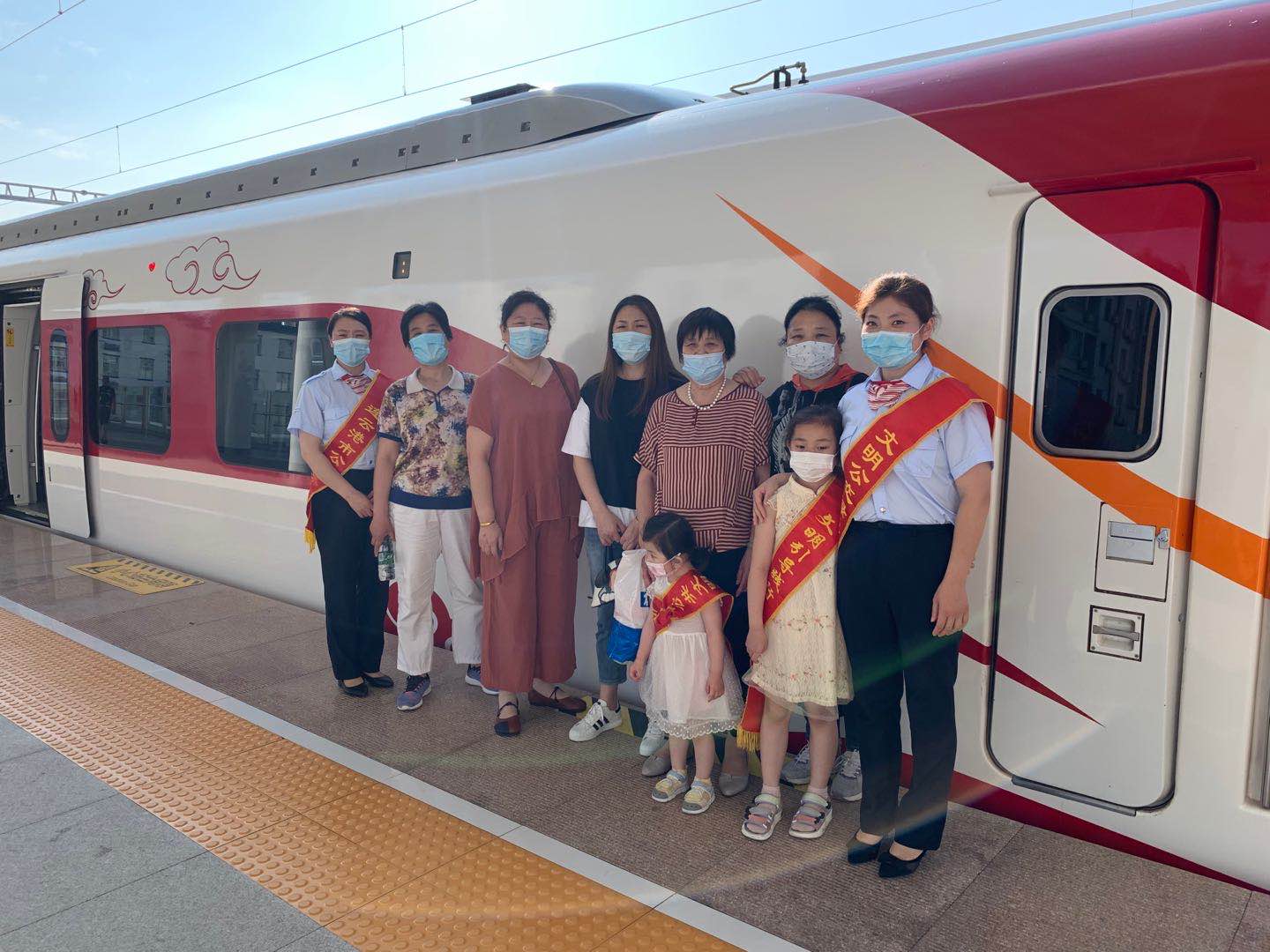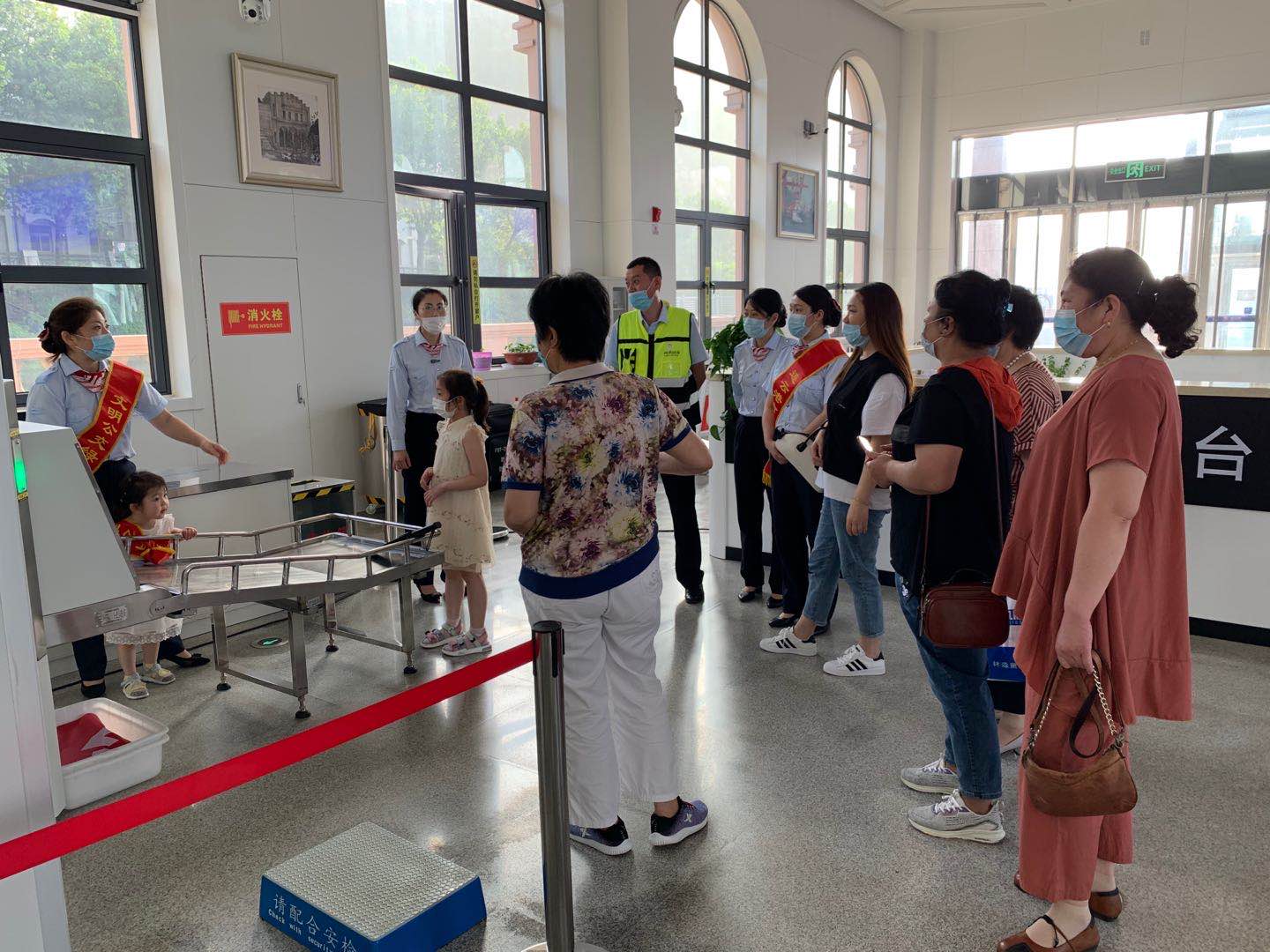 当天下午4点整,活动准时开始。家属们统一来到城市动车连云港站集合,值班站长韩雪首先将动车站务日常工作向家属们做了详细的讲解,接着带领大家先后参观了城市动车候车室、员工值班室等区域。员工家属对动车站内的员工休息区及办公区域的环境卫生纷纷点赞,并拍照留念。孩子们第一次来到城市动车站坐动车,更是兴致勃勃,戴上了红绶带,当起了“小小引导员”。最后,为了让家属加深体验感,带领大家乘坐至连云古镇的一趟动车,在乘车的过程当中,韩雪对动车行驶停靠站点等进行讲解,员工家属也对动车的乘车体验大加赞扬。