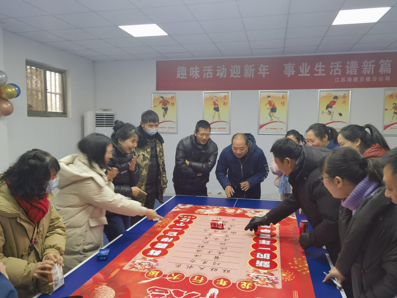 龙行龘龘,欣欣家国。伴随着冬日里最温暖的阳光怀揣着2023年满满的收获,江苏海建交建分公司工会组织了一场2024年“迎新春”职工趣味活动。本次活动共设置了三个项目,包括掼蛋、滚滚乐、以及球拍端乒乓球。