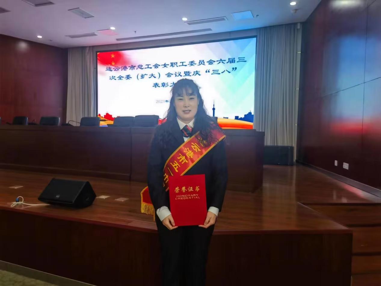 3月1日,连云港市总工会召开了2023年庆”三八”五一巾帼标兵(岗)奖表彰会议,会议总结部署全市工会女职工工作,宣读了《关于表彰2023年度五一巾帼标兵(岗)的决定》,并现场为10个荣获“五一巾帼标兵岗”代表、9名荣获“五一巾帼标兵”代表颁发了奖牌、证书。江苏海建公司仲梅被授予“连云港市五一巾帼标兵”荣誉称号。