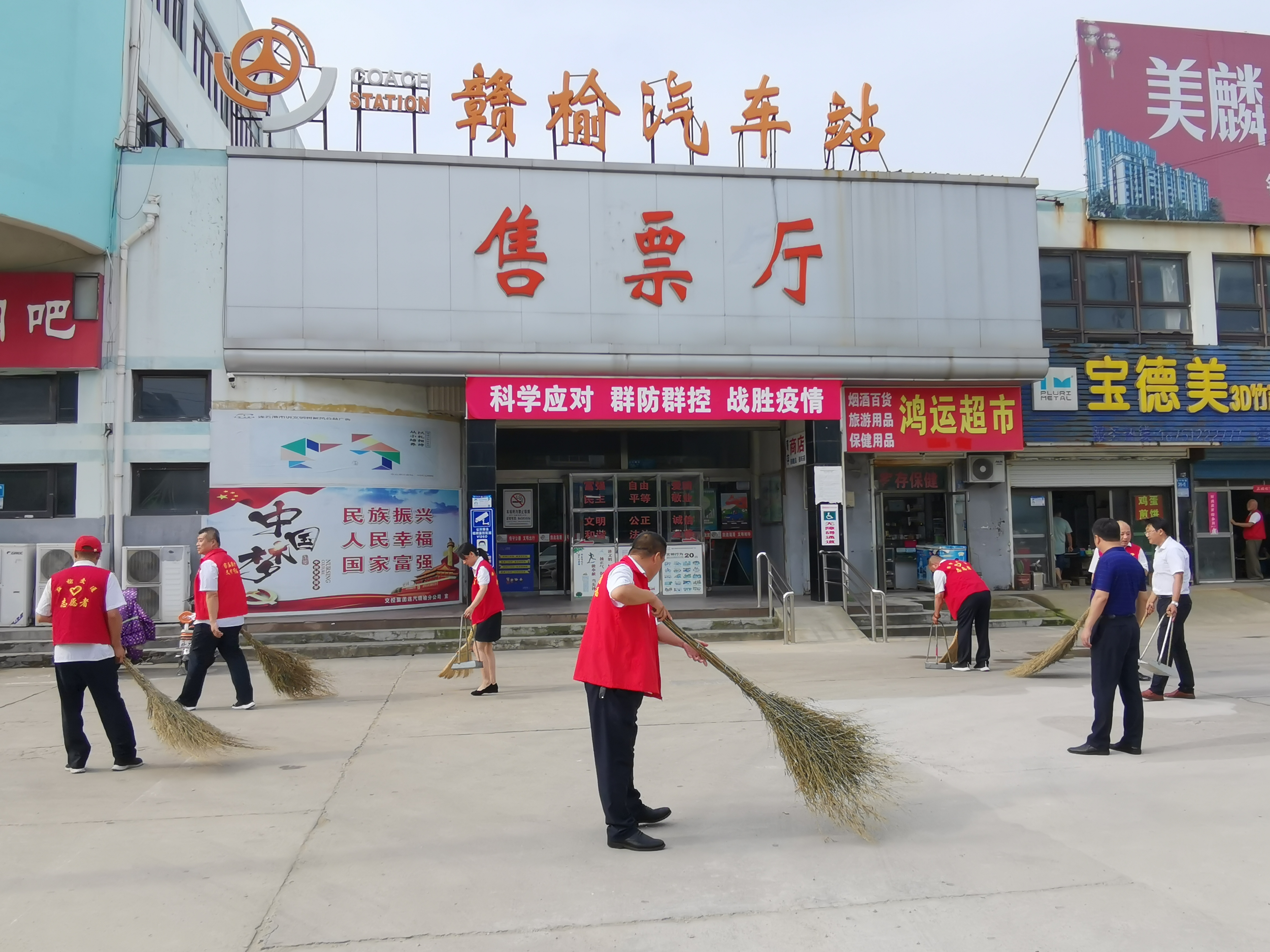 7月8日早上8:00赣榆公司组织志愿者们身穿红马甲,拿着扫把等各种工具对站前北广场、出租房门前等地进行卫生大扫除活动,对门前的烟头和小广告进行进一步清理,将一辆辆乱停乱放的共享单车有序摆放到指定的区域内