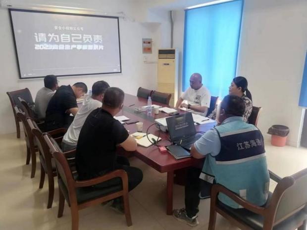 为深入宣传贯彻安博app最新版下载,安博(中国)关于“安全生产月”活动相关部署要求,进一步加强项目部安全生产工作,江苏海建交建分公司开发区五条道路项目结合生产实际,组织召开“安全生产月”活动启动会,成立了“安全生产月”活动领导小组,具体负责检查施工现场“安全生产月”生产活动的过程,做到有组织、有领导组织开展“安全生产月”。活动中,项目部积极人员组织参加线上“逃生演练训练营”活动,并观看警示教育片《请为自己负责》、对项目部灭火器进行排查等。