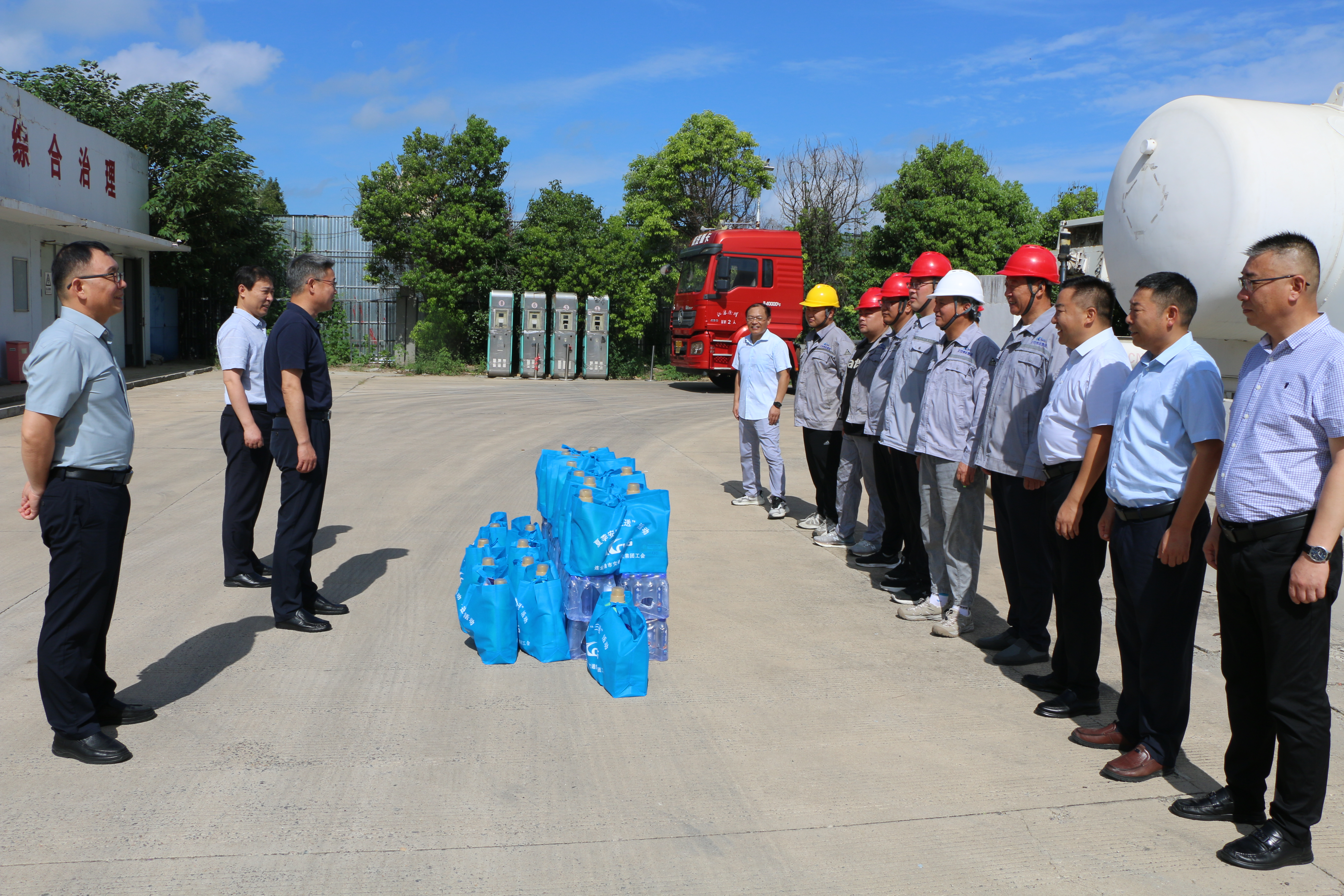 时至盛夏,酷热难耐。7月26日,交通控股安博app最新版下载,安博(中国)党委书记、董事长仲伟涛,党委副书记、工会主席陈金师,工会副主席茅红兵、孙华一行到物流安博app最新版下载,安博(中国)权属加气站开展“送清凉”走访慰问活动,为奋战在高温一线的职工送去防暑降温慰问品及组织的关怀和问候。物流安博app最新版下载,安博(中国)党委书记、总经理张国兴,副总经理、工会主席刘超,总经理助理王高林参与慰问。