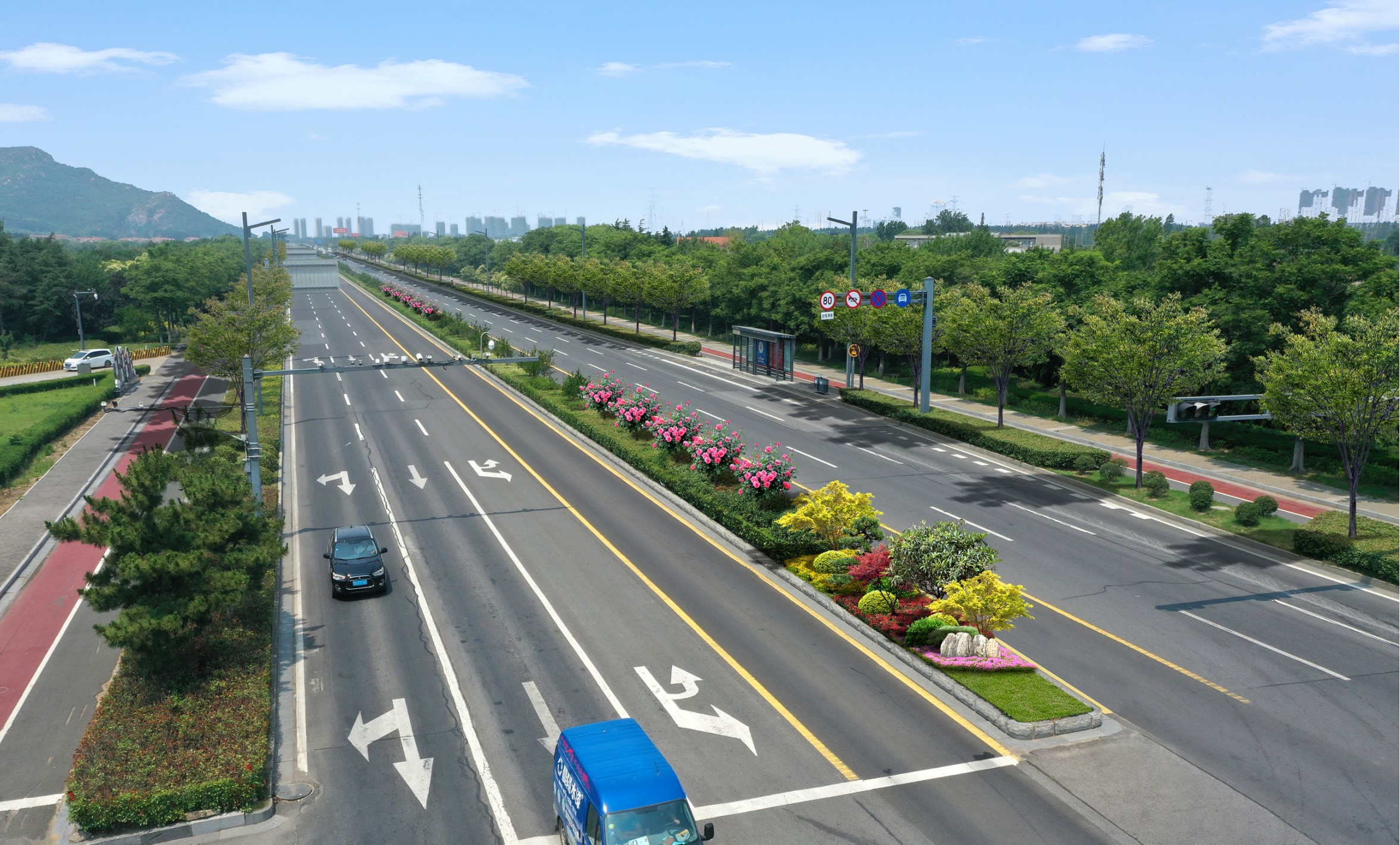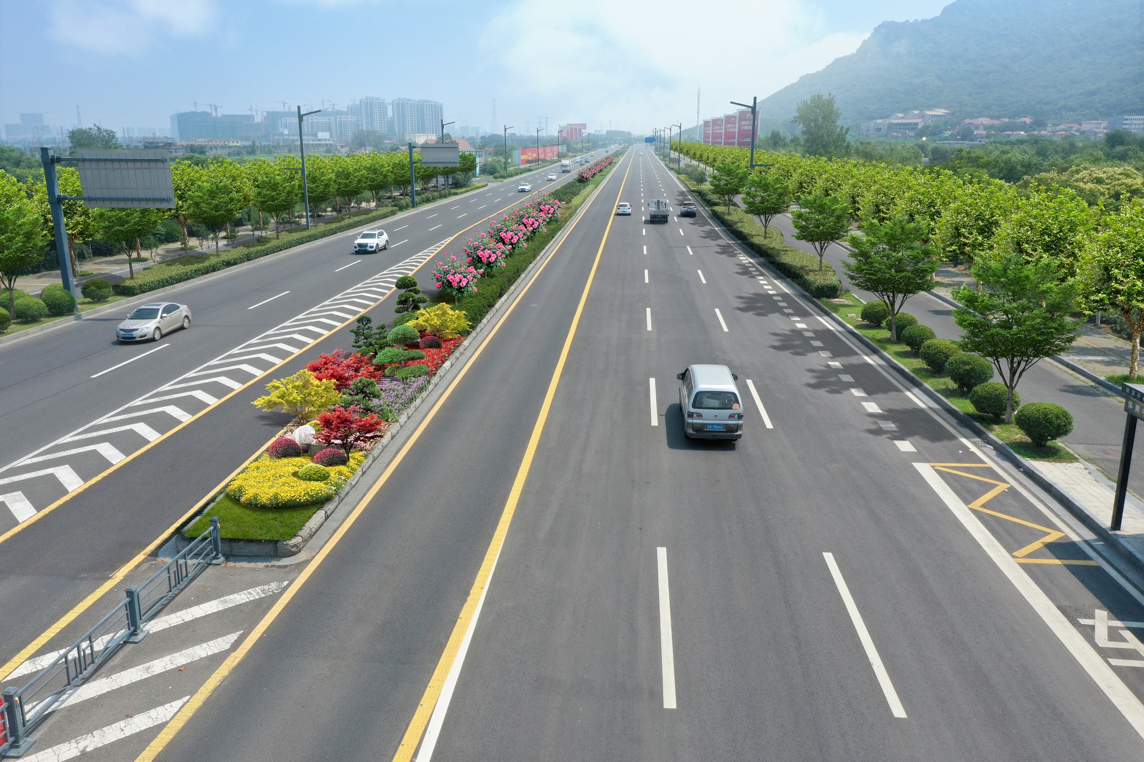 本工程预计12月完工,通过优化市区重点道路及节点绿地网络结构,突出景观艺术性塑造,提升绿地空间品质,进一步彰显城市特色风貌,打造绿树成荫、色彩绚丽、季相分明、自然生态的城市道路林荫多彩长廊。