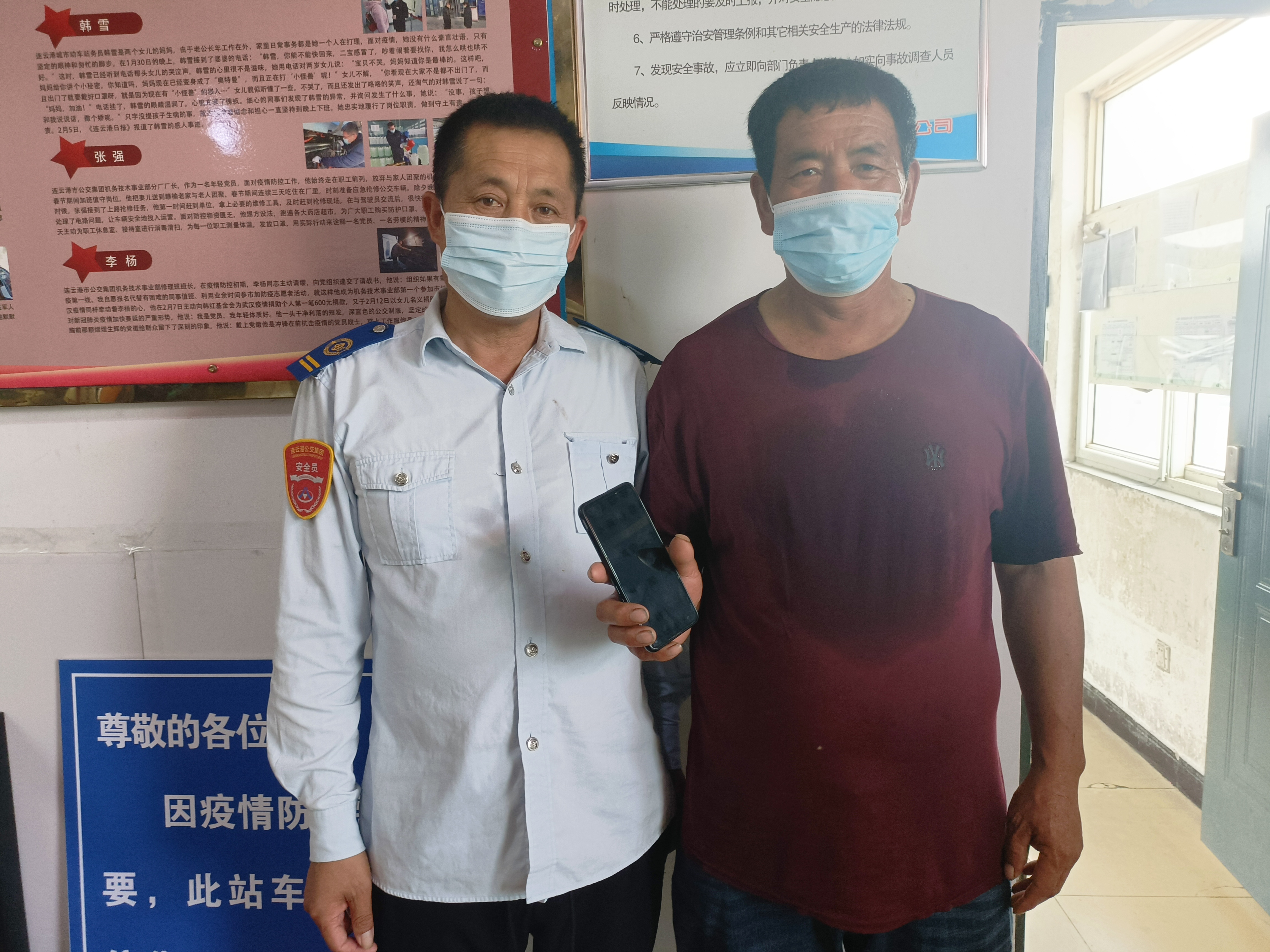 原来,市民汤先生和朋友在工商银行站一起乘坐B1直到在海一方游玩,到达终点站后不慎将手机遗落在车上。当汤先生发现后,车辆已经离开在海一方站,于是他找到刚到站的B1线驾驶员韩家明帮忙。当汤先生到东城调度室领取手机时,对韩家明师傅的帮忙表示十分感谢,对尚德千师傅的拾金不昧精神给予点赞。汤师傅说,现在公交的服务真心让人满意,驾驶员能急乘客之所急,让他非常感动!