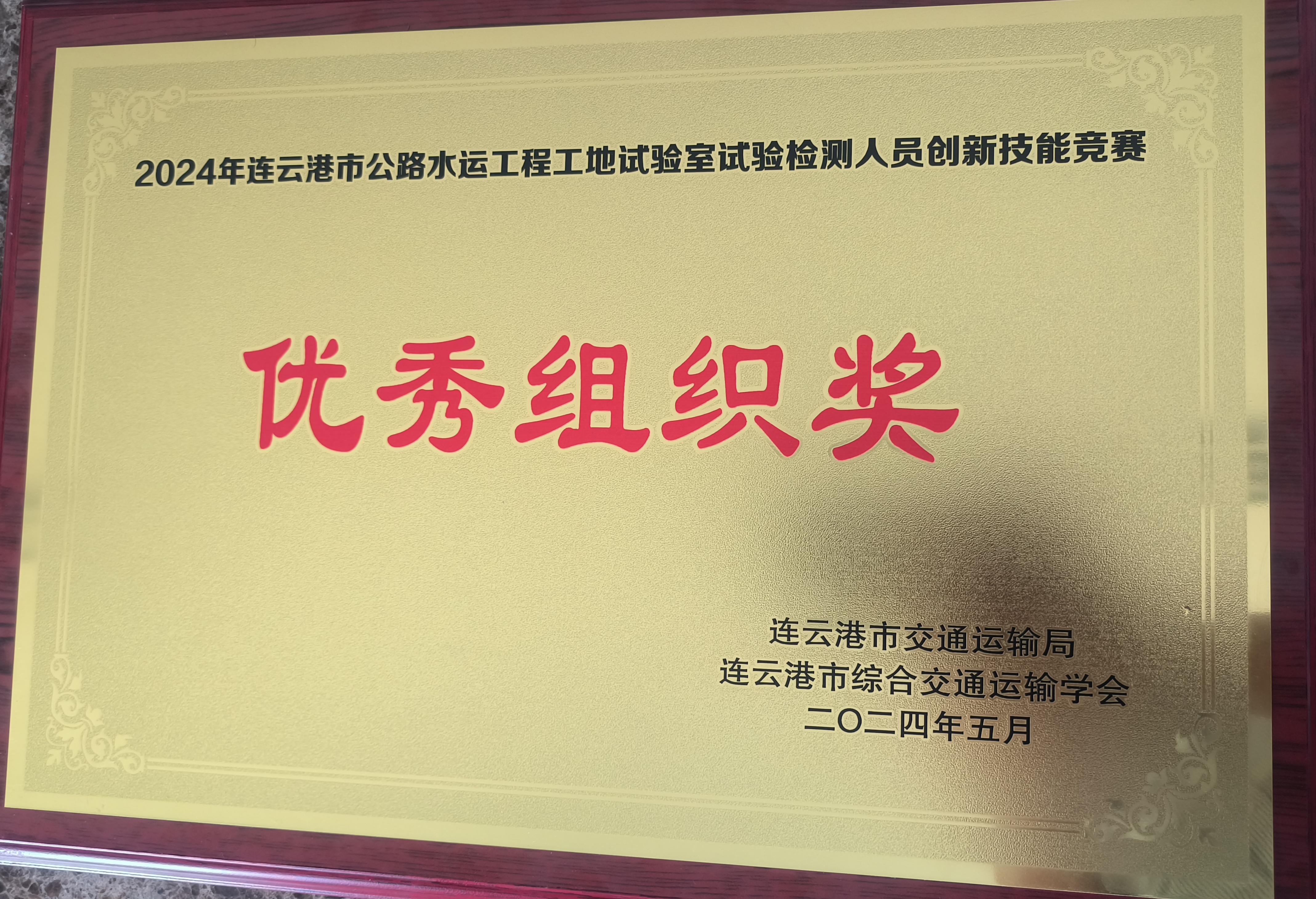竞赛期间通过团结合作,刻苦努力,江苏海建新丝路分公司瀛洲南路改造及南延工程(一期)施工项目工地试验室各位参赛队员发挥出色,展现出高超的检测本领,在本次技能竞赛中获得优秀组织奖。