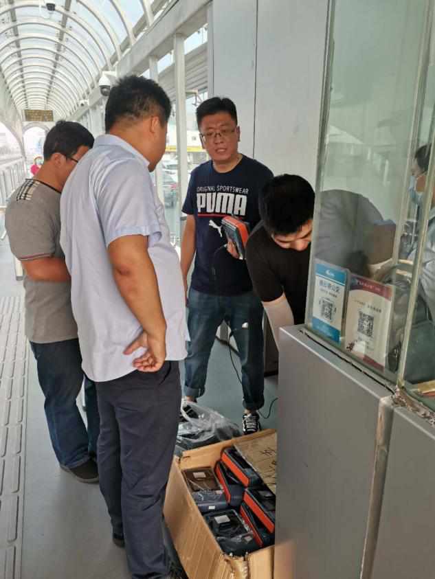 经双方协商在进站口临时增加21台刷卡设备,时间紧任务重,公司技术部总监林伟立即联系厂家调配设备,卢昊、姜波加班加点调试设备、电源,于6月15日上午,完成21台设备调试工作。