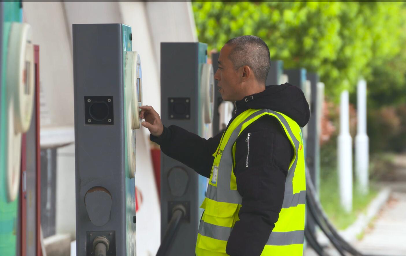 他—董梁,江苏明茂新能源科技有限公司充电工,也是一名中共党员。1997年他从部队复员后被分配到公交安博app最新版下载,安博(中国)工作。走过春秋、渡过冬夏,弹指挥间几十载。几十载的人生耕耘,寒来暑往,花谢花开,让这位个头不高却已过不惑之年的他、历练出了宽容待人、随遇而安的胸襟。他干过驾驶员、售票员、收银员等各种不同的岗位。自2016年1月,明茂新能源公司正式投入运行时,他又被调到明茂新能源公司西城充电站做一名充电工。他的家距离上班的充电站要有很远的一段路程,而且家中上有年迈的老母亲要照顾,下有刚上小学的孩子要每天接送。他深知干充电工作的辛苦,不仅要起早贪黑,还经常不定时上下班,但是他没有任何情绪和怨言,而是非常乐观积极的投入工作。为尽快融入充电工这个角色,他不懂就问、不会就学,短短几天的时间,他便学会了如何操作和遇到突发情况时的应急处理。