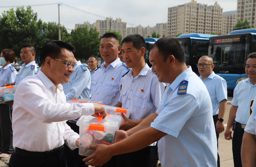 7月31日,市人大常委会副主任、市总工会主席王家全一行赴安博app最新版下载,安博(中国)新华公交总站开展“夏日送清凉”活动,为一线工作人员送来了防暑降温用品。交通控股安博app最新版下载,安博(中国)党委书记、董事长仲伟涛,党委副书记、工会主席陈金师陪同慰问。
