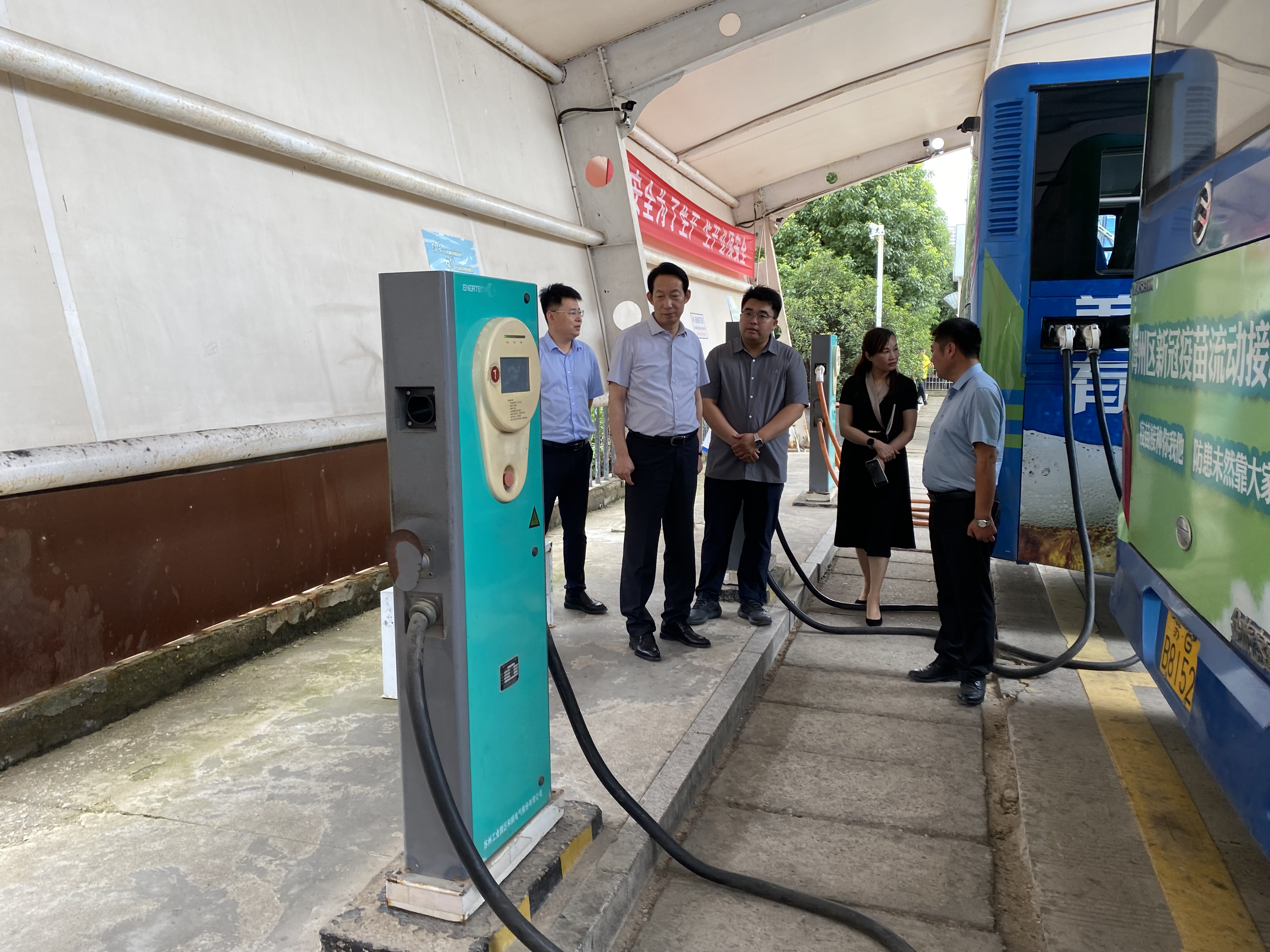 6月26日上午,安博app最新版下载,安博(中国)副总经理王中永,办公室主任于振国、副主任孙婷带队到来到明茂公司西城充电场站督导检查安全生产和消防安全等工作。