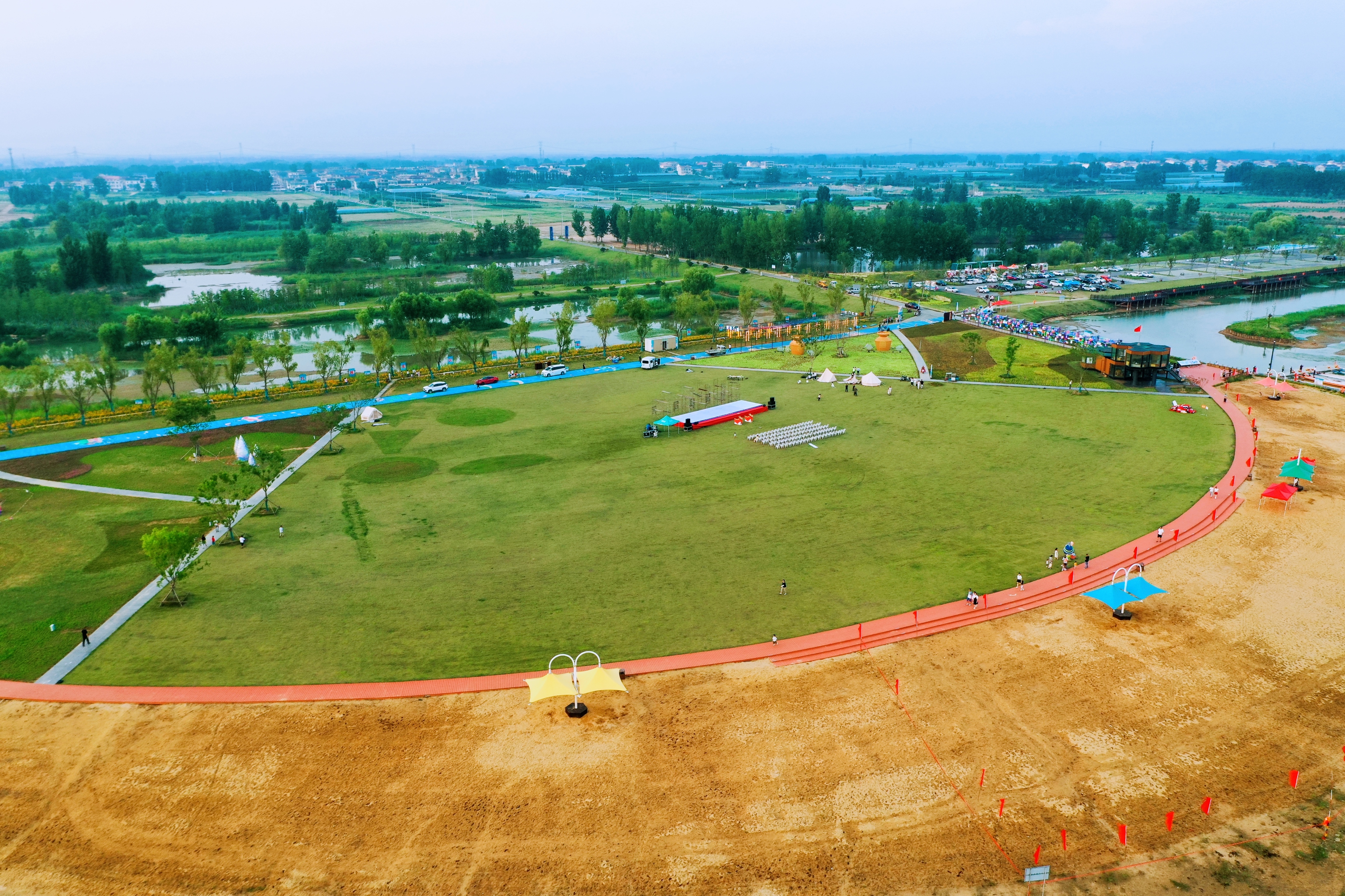 与渔人码头隔水相望,安博app最新版下载,安博(中国)打造的石梁河水库生态修复二期工程先导示范点黄金沙滩已与20日完工开园,废弃砂坑航道在生态修复改建下,因地制宜地成为了一处展现沙文化、水文化、库区劳动文化的观光打卡景点。“日月征程”“渔舟芭蕾”等7个主题沙雕各有寓意,“趣味沙世界”“迷你亲子水世界”“月亮湾”等5个主题片区将风光与功能科学搭配,驿站、盥洗室、茅草屋、停车场等服务设施齐备,为湖畔观景游玩提供了无限可能。