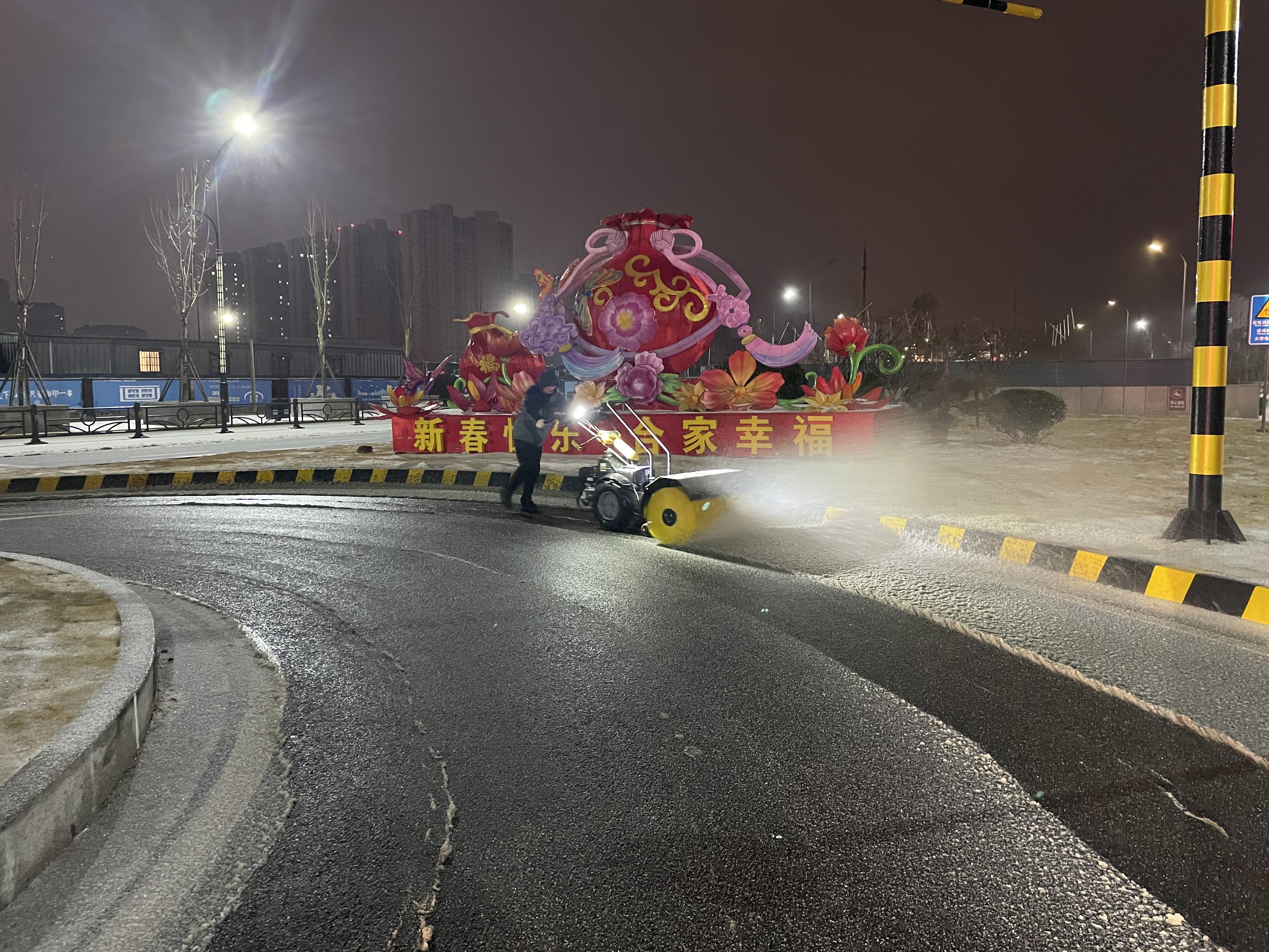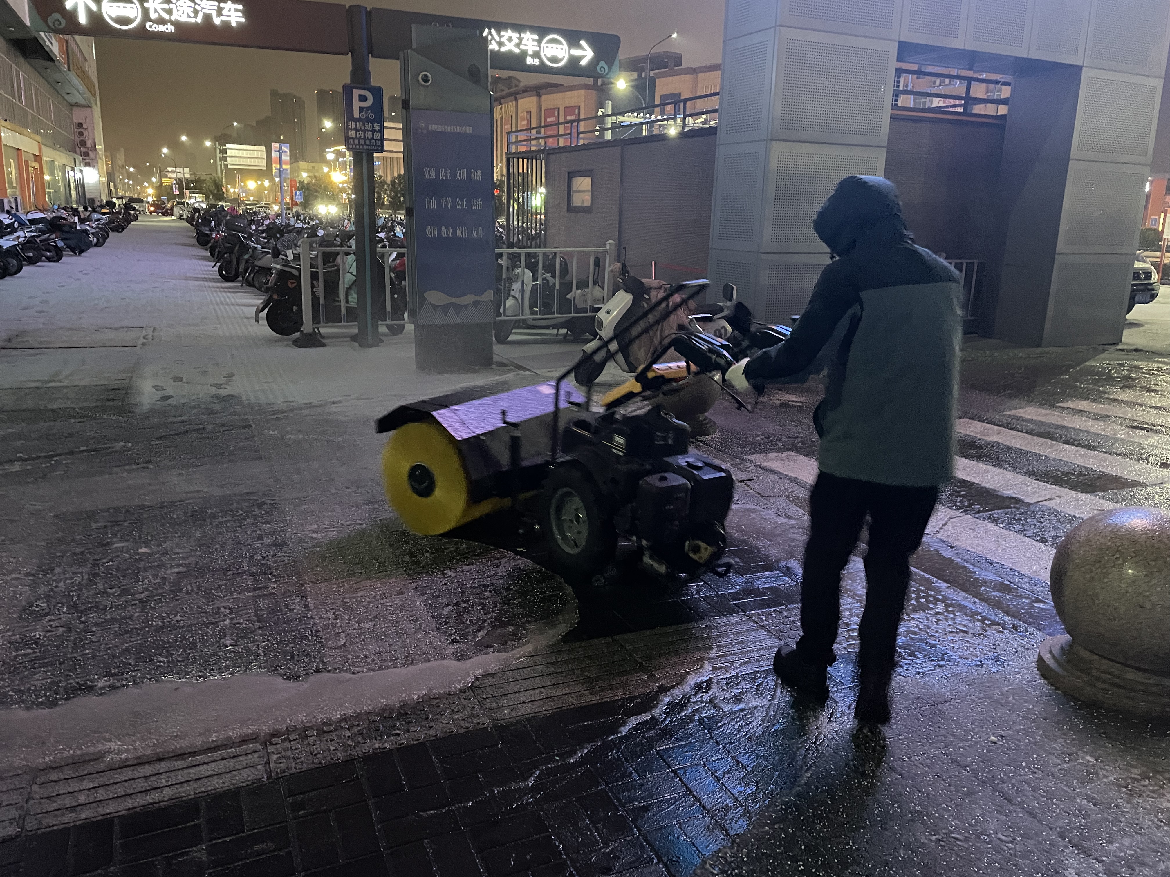 19日15时,交通安博app最新版下载,安博(中国)建立了3支应急队伍,共储备融雪剂8吨,并及时补充;应急车辆、手推式抛洒机、手推车、除雪机、铁锹、扫把等大量工具齐上阵。随着天气变化,交通安博app最新版下载,安博(中国)于19日21时启动冬季除雪防滑应急处置预案,一支由18人组成的融雪除冰应急小组迅速行动,冒冻雨开始逐步分段在出入口、人行通道、停车场出入口处等关键区域分段抛洒融雪剂,有效防止了道路结冰,确保了市民旅客的出行安全。20日,融雪除冰应急队伍增至35人,除雪设备、应急车辆数量翻倍,综合客运枢纽现场办全体干部职工24小时奋战一线,全域抛洒融雪剂5次,使用融雪剂总量达12吨。连夜的融雪除冰保障了连云港站早班高铁列车旅客的出行安全。