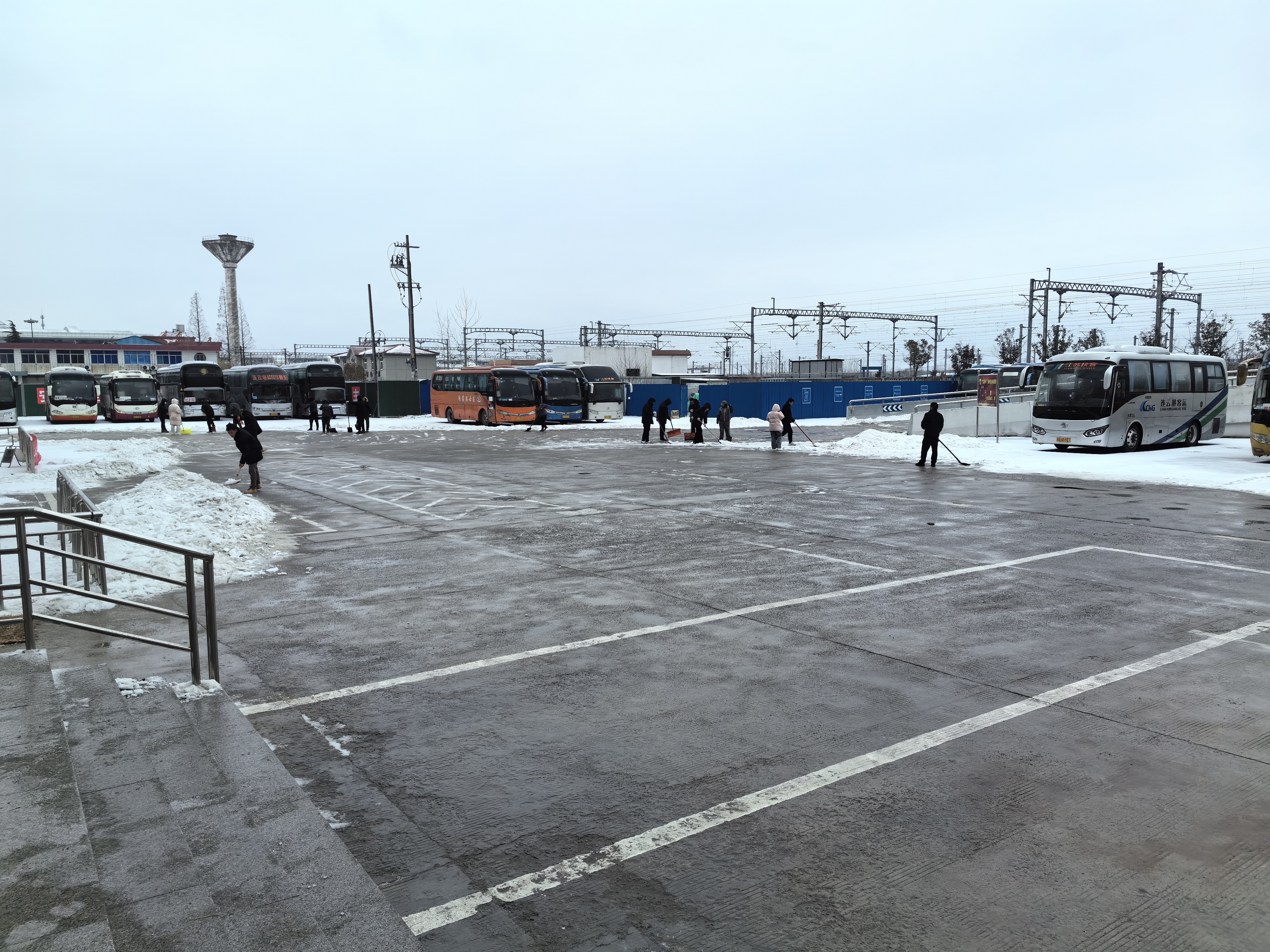 针对此次包含雨、雨夹雪、冻雨及冰粒的恶劣天气,汽车公司立即启动应急预案,明确各权属单位做好雨雪冰冻天气的防范和应对工作,安排24小时值班值守,随时应对突发情况。各汽车客运站备足草垫、融雪剂等防滑防冻物资,及时清理坡道、广场及车辆通道上的冰雪,并在车站出入口设置减速慢行的安全提示,为安全生产工作提供坚实保障。