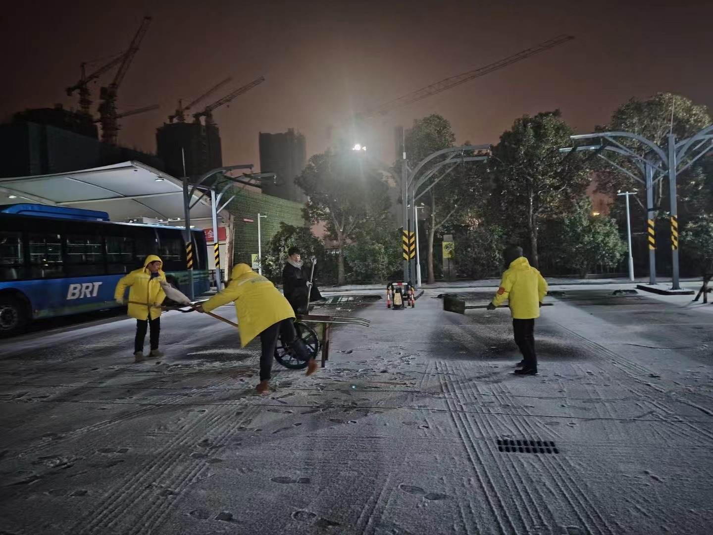 2月19日,我市出现低温雨雪冰冻天气,根据市扫雪除冰指挥部《关于启动扫雪除冰Ⅲ级(中雪)应急响应的通知》文件要求,丰达公司第一时间启动扫雪除冰应急预案,以雪为令,全力做好扫雪除冰应对工作。