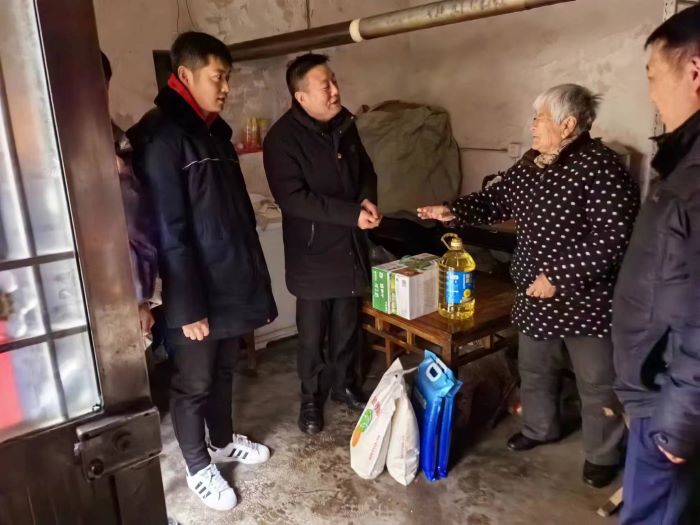 在残疾老人刘文霞家中,光荣之家的牌子还安静地挂在老旧的铁门旁,老人的儿子已于多年前在部队离世,刘文霞一直过着独居的生活。得知她的实际困难后,队员们及时送上了大米、油、牛奶等慰问物资,叮嘱她一定要保重身体,用积极乐观的心态面对生活。