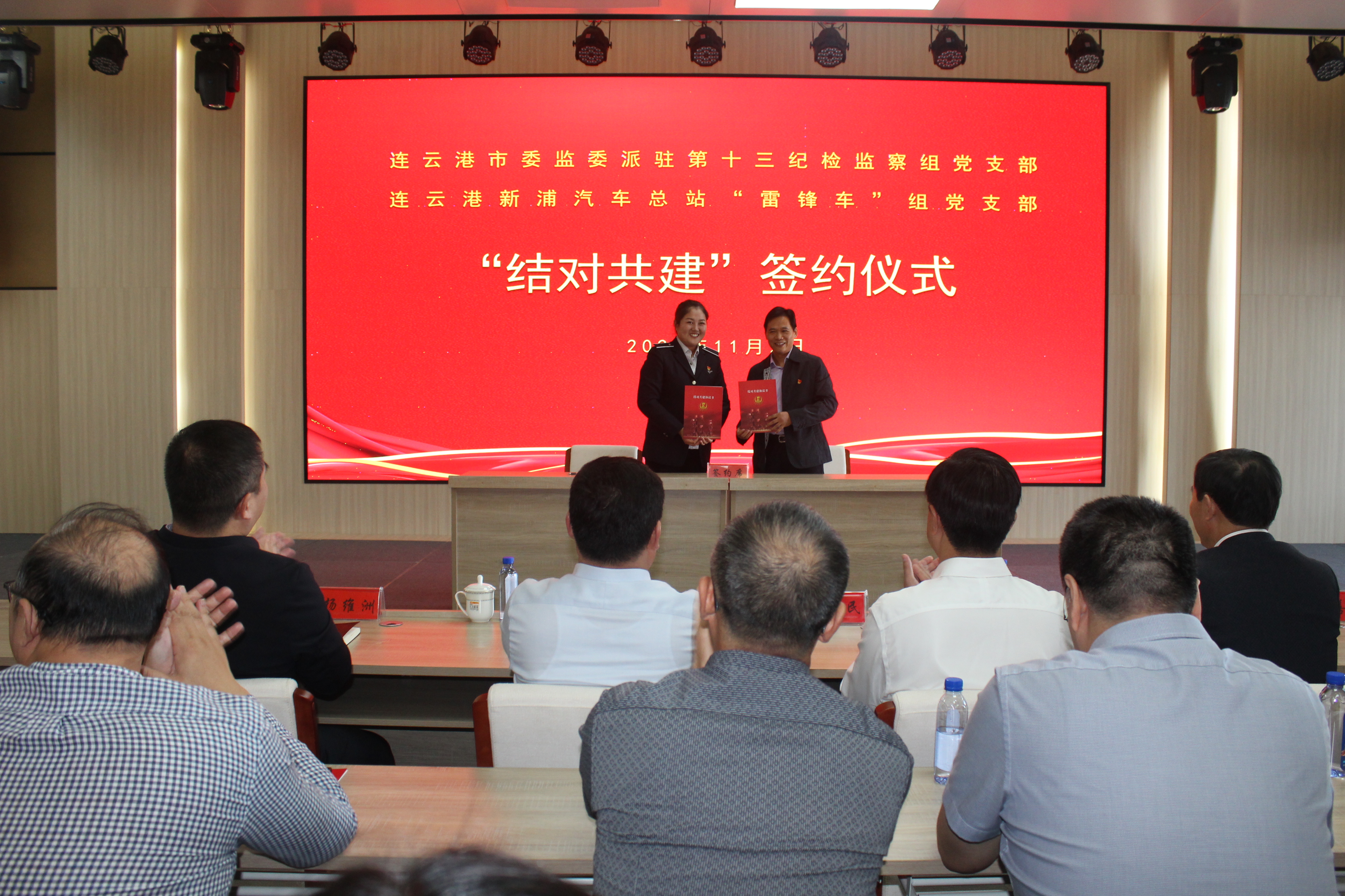 最后,权太琦代表连汽新浦汽车总站“雷锋车”组党支部分别与连云港市纪委监委派驻第十三纪检监察组党支部、连云港市财政局第一党支部签订了党建结对共建仪式。大家一致认为要紧紧围绕“结对共建聚合力 党建引领促发展”这一主题,以共建促党建,以共建促发展,推动党组织和党员“两个作用”发挥,共同努力开启“结对共建”新篇章。