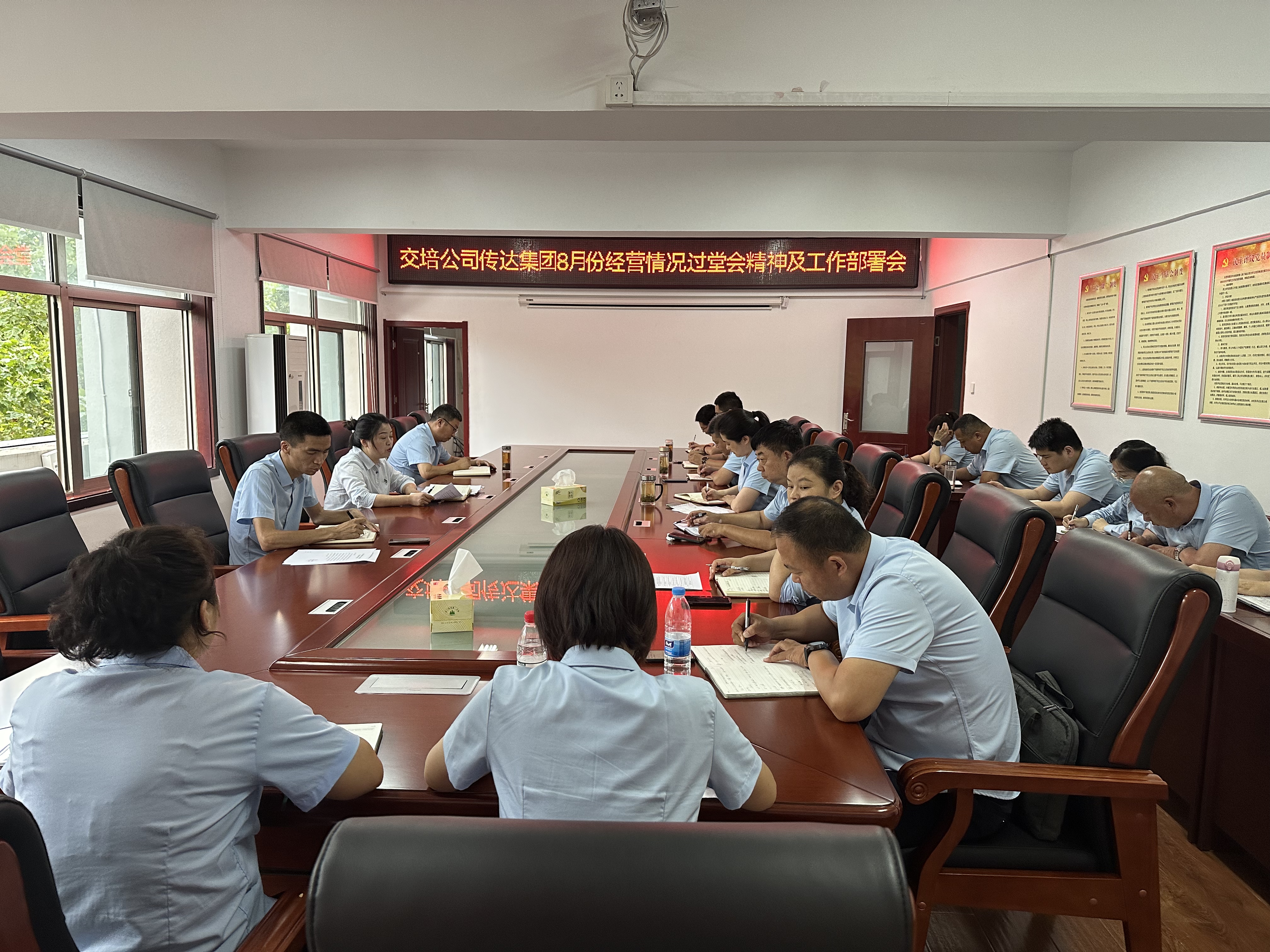 9月12日下午,交培公司召开学习贯彻安博app最新版下载,安博(中国)8月份经营情况过堂会会议精神工作会议,公司中层干部参加会议,公司领导班子出席会议,会议由公司党委书记、总经理李霞主持。