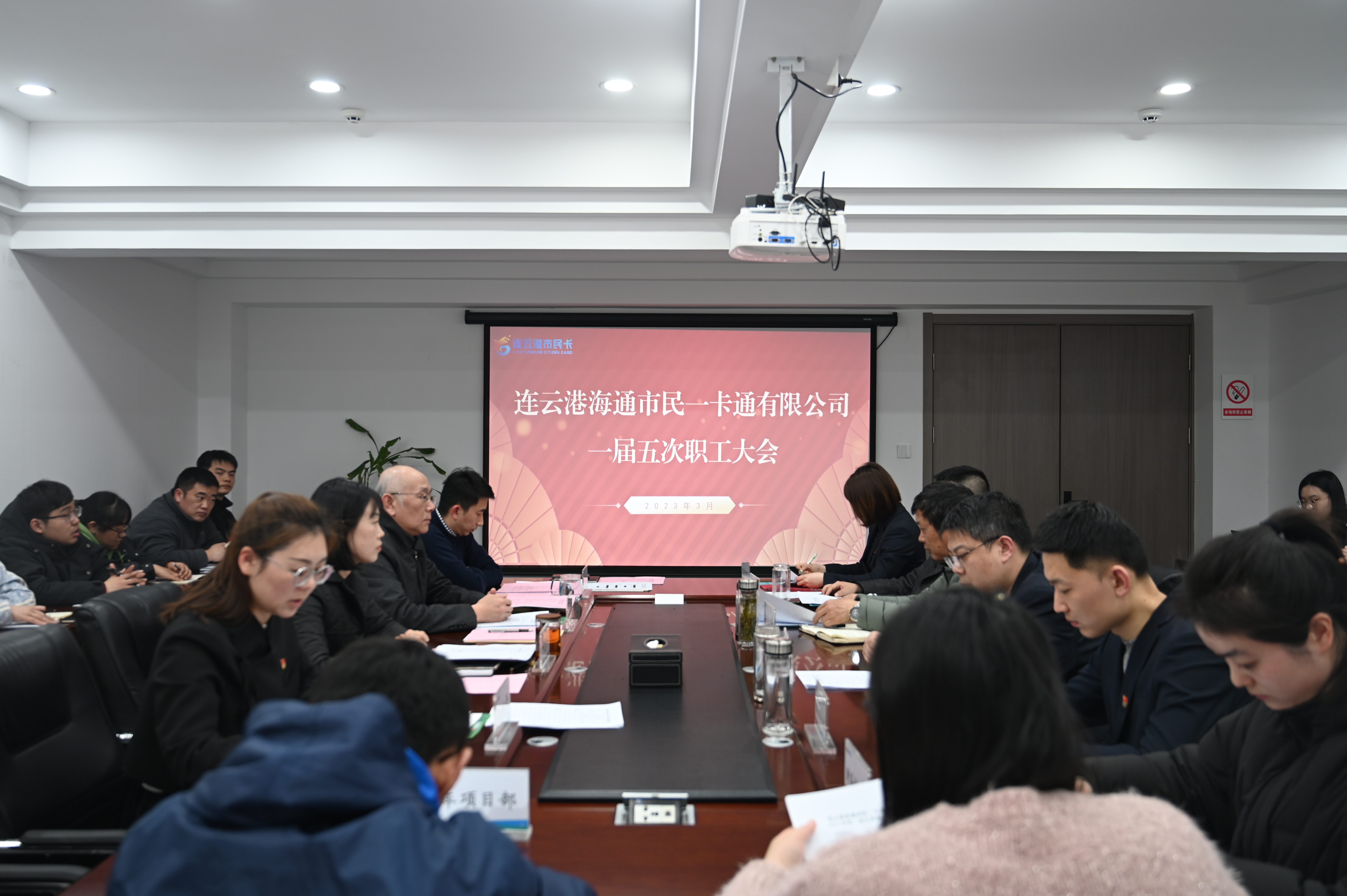 会议审议通过了《2022年度工作报告》《2022年度工会工作报告》《2022年度决算报告暨2023年度预算报告》《连云港海通市民一卡通有限公司职工手册》,工会主席王冰向公司党支部书记、总经理叶星妍递交了市民卡公司《“1+3”集体合同》。