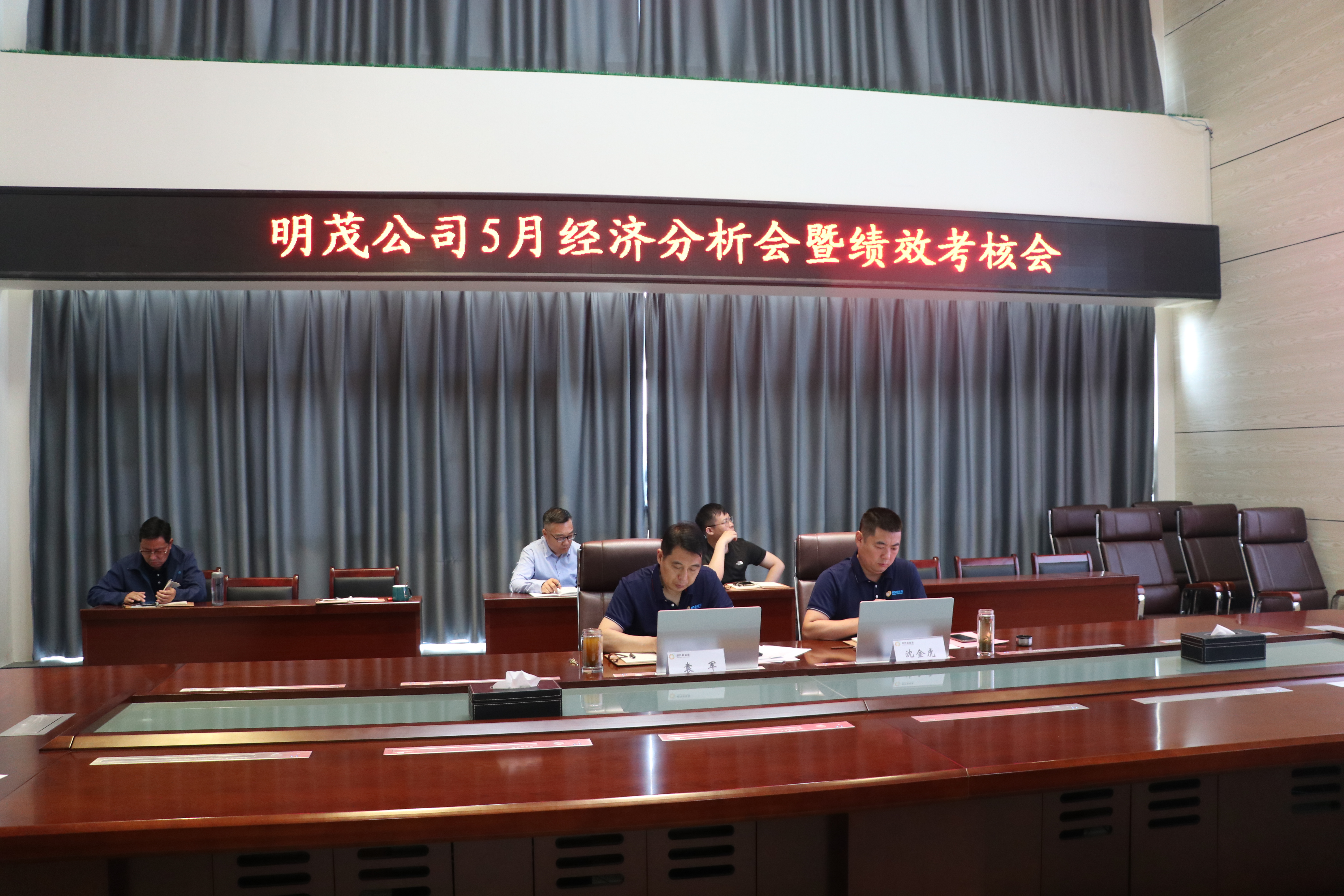 6月13日上午,明茂公司召开2023年5月份经济分析会暨绩效考核会,公司领导班子成员出席会议,公司各部门主要负责人及相关人员参加会议,会议由公司党总支书记、总经理袁军主持。