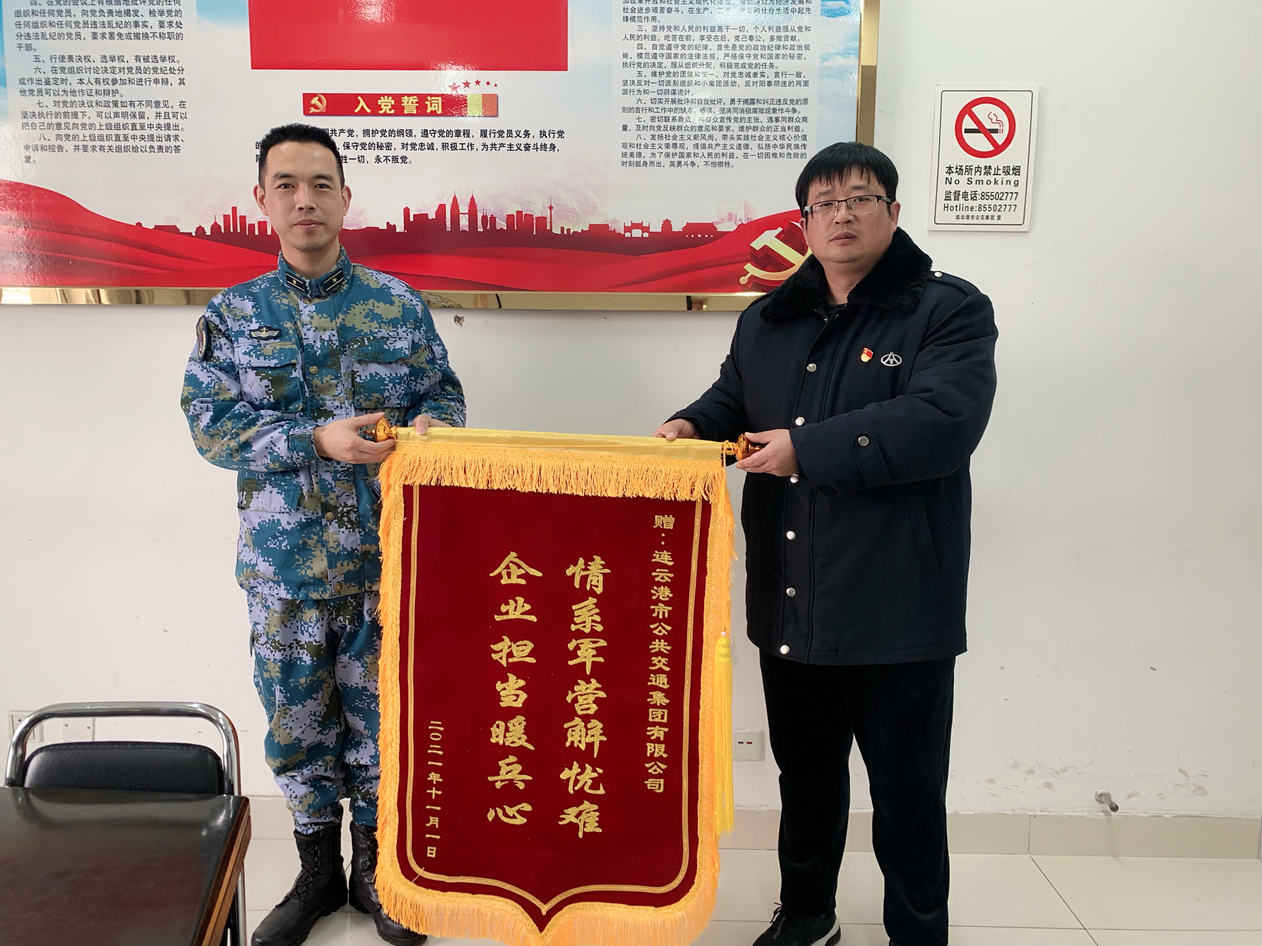 1月16日,解放军某部海军营区官兵代表特地赶到公交安博app最新版下载,安博(中国)公交事业二部,送来了一面写有“情系军营解忧难 企业担当暖兵心”的锦旗。